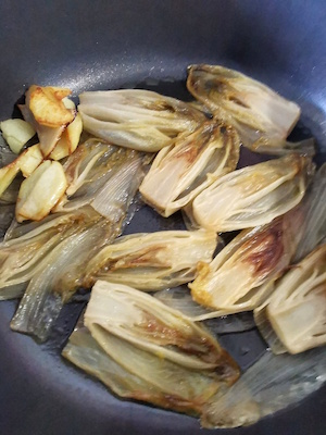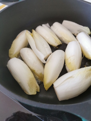 • Lorsque les endives ont pris de la couleur les retourner et poursuivre la cuisson.