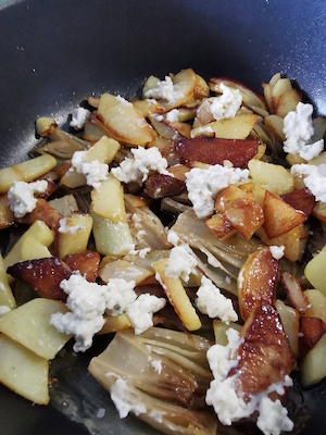 • Ajouter quelques petits morceaux de roquefort/crème sur les légumes et le laisser fondre à feu doux