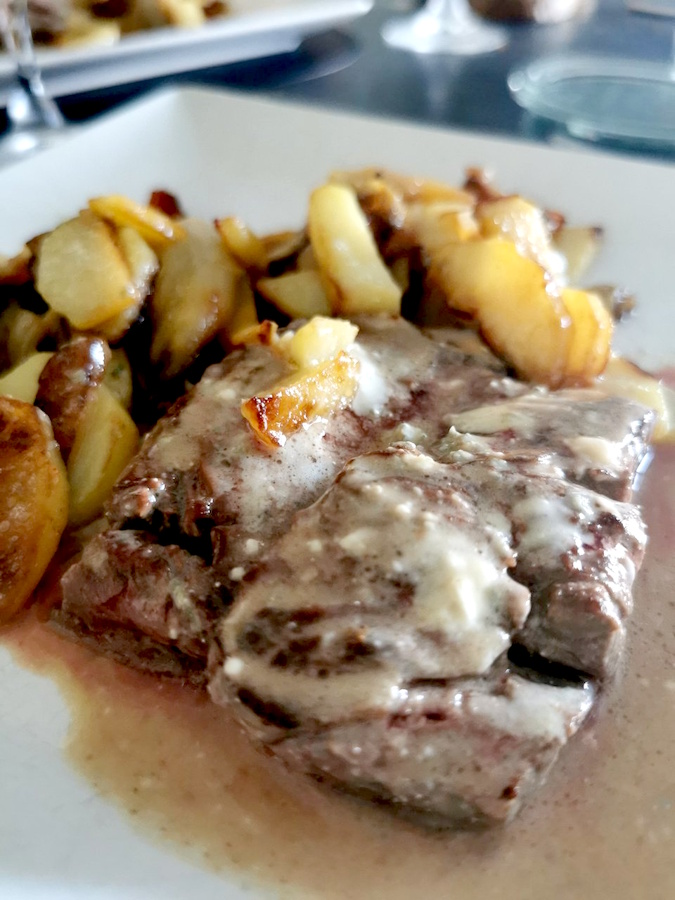 Quel repas mes ami(e)s ! je ne sais pas si c’est parce que ça faisait longtemps que j’étais privée de boeuf mais comme mon onglet était bien tendre et que cette association endives/pommes de terre/roquefort était super, je me suis trop régalée