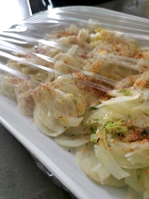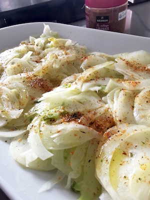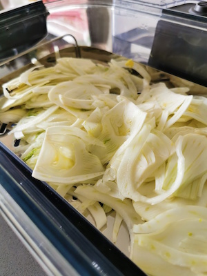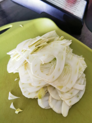 1- Le fenouil doit être coupé avec une mandoline car il faut vraiment que les tranches soient très fines.