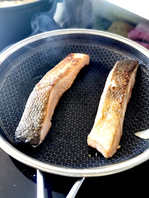 3- Le saumon, comme tous les poissons, ne doit pas être trop cuit. Bien sûr cela dépend des goûts mais c’est tellement meilleur lorsqu’il est rosé à l’intérieur !