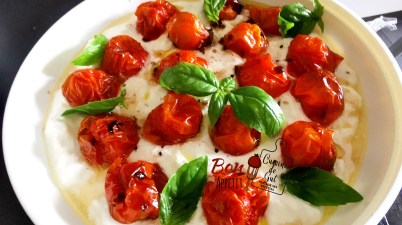 Tomates Cerises confites sur lit de Burrata crémeuse : Une bonne idée pour l’apéro