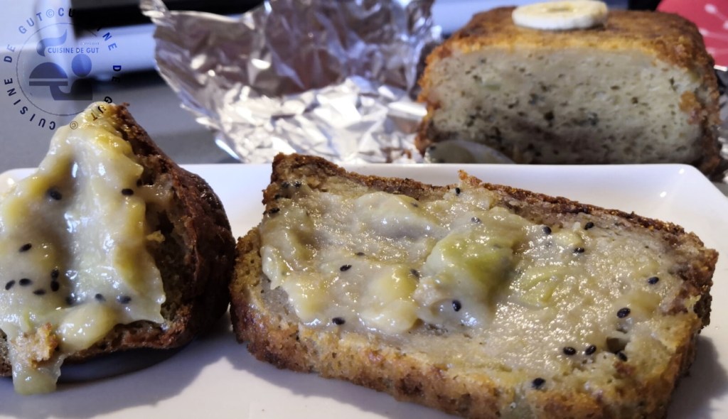 Cake sans beurre à la compote de banane et kiwi au sucre Muscovado et sirop de spéculoos