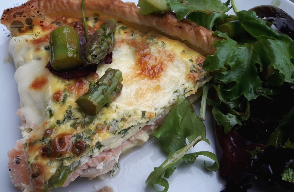 Quiche asperges saumon champignons aux 2 fromages