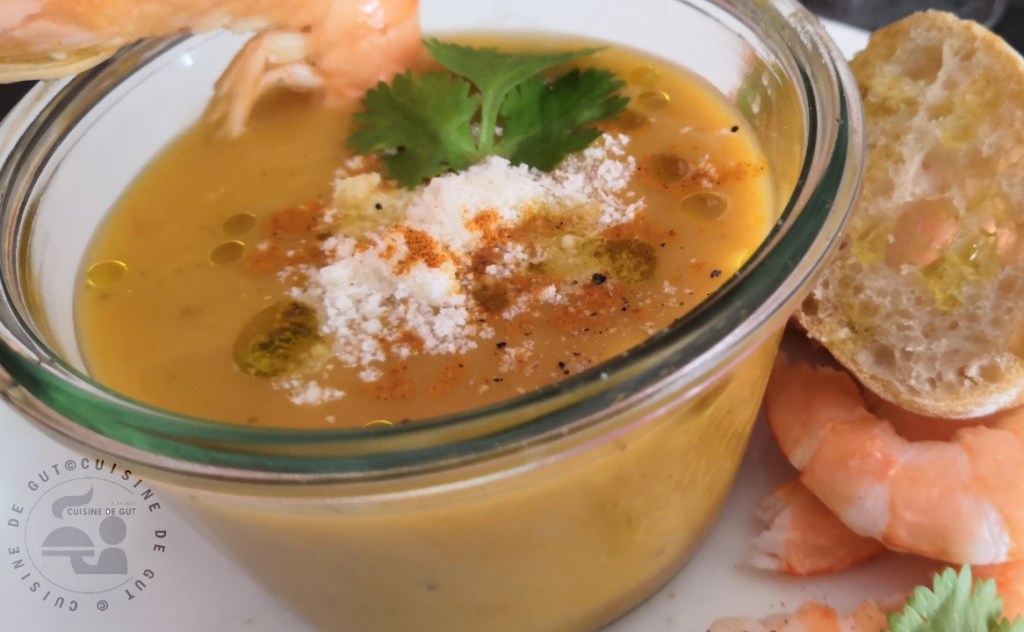 Soupe froide de légumes bien parfumée aux crevettes