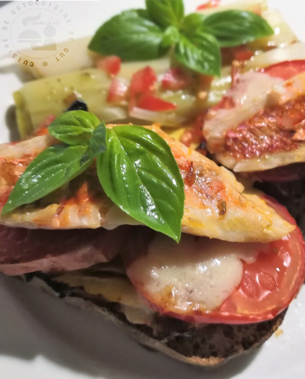 Bruschetta Poivrons Rouget et Poireaux vinaigrette
