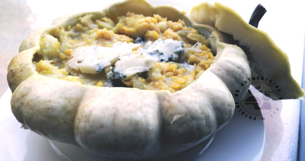 Pâtisson farcis Lentilles corail et Bleu des Basques