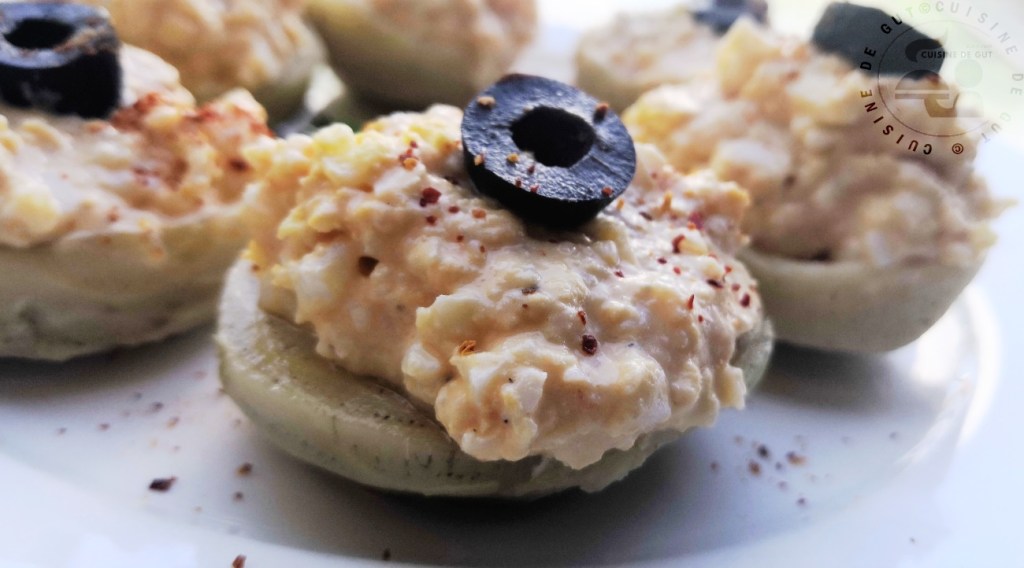 Moules froides aux poivrons et roulés d’aubergine à la Scamorza fumée
