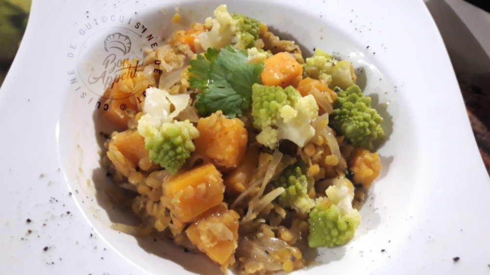 Lentilles corail au cidre, butternut et chou romanesco