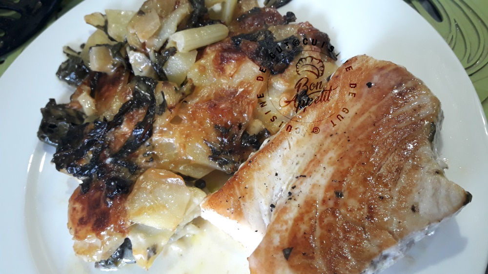 Thon et gratin de blettes et pommes de terre au cidre