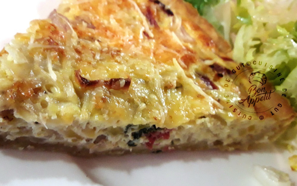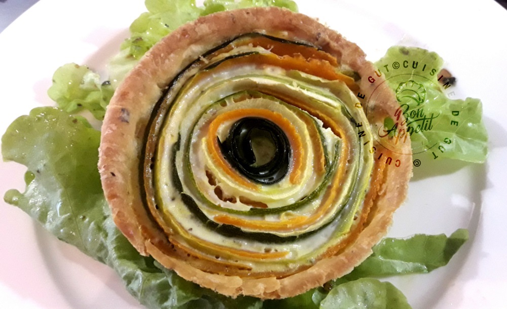 Tarte au choux, poireaux, poivron jaune et pois chiches