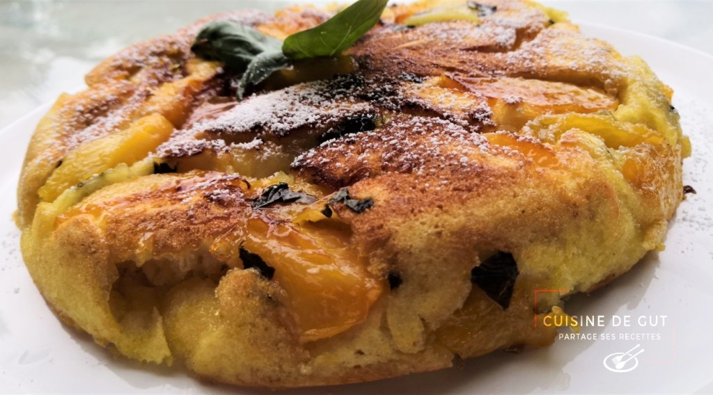 Gâteau /crèpes aux pêches Basilic et sirop Amaretto