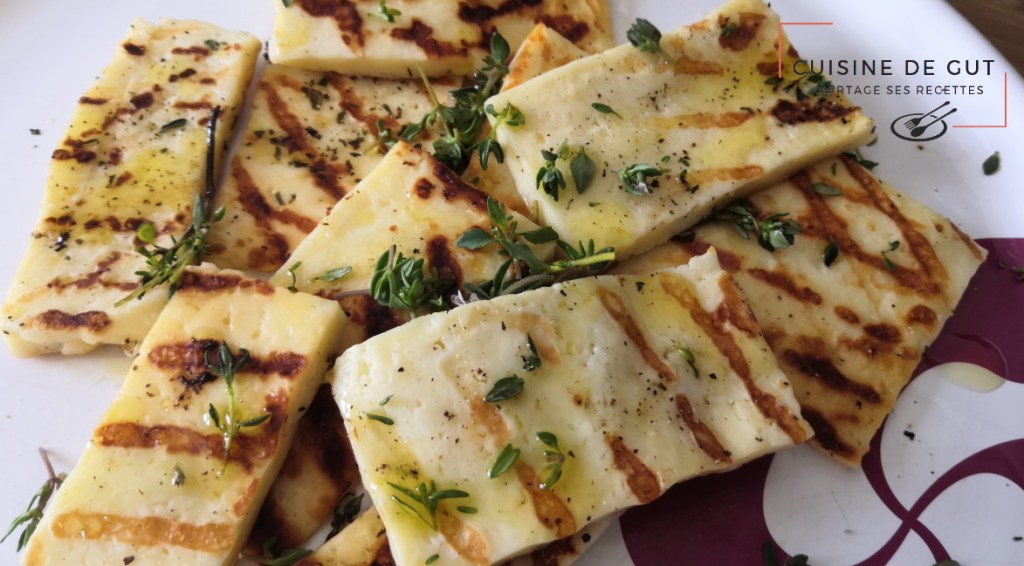 Halloumi grillé et mariné au thym dans sa salade estivale