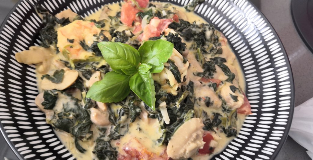 Crevettes sauce crémeuse bien parfumée et légumes
