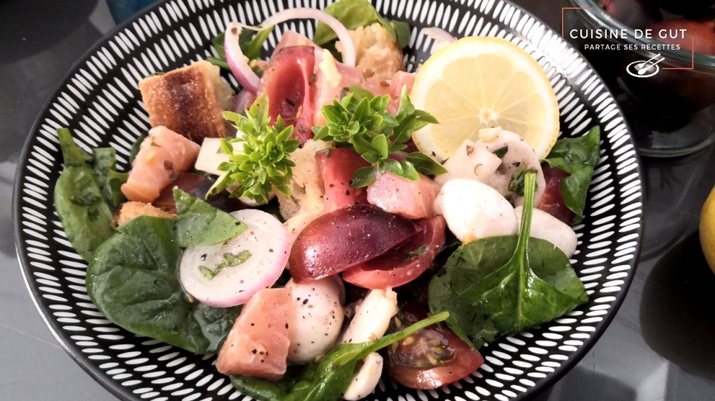 Salade de pousses d’épinard au coeur de saumon fumé