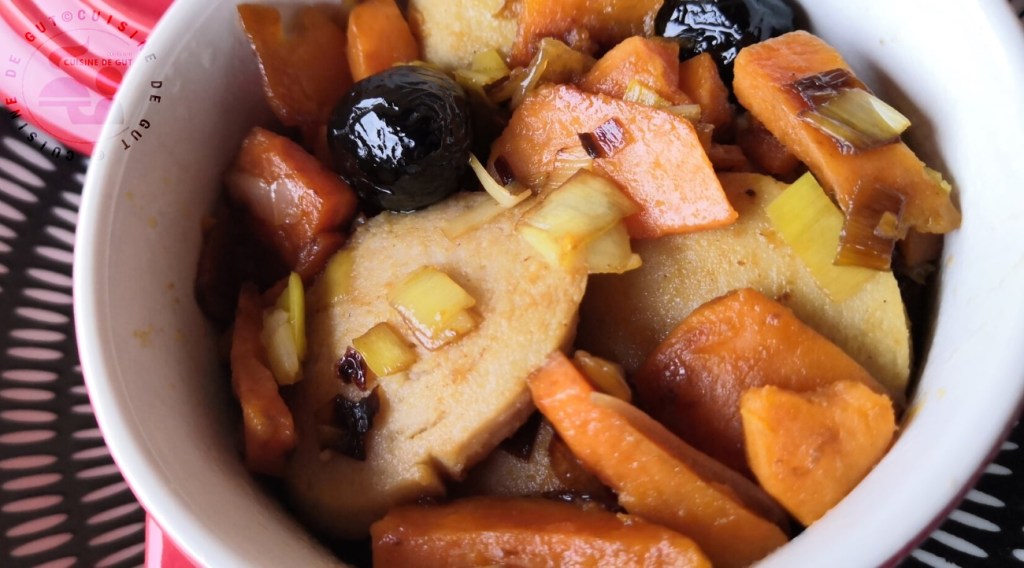 Boudin blanc patate douce poireaux et olives noires