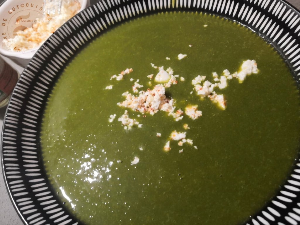 Velouté cresson patate douce et feta au piment d’espelette