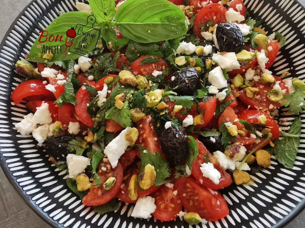 Salade de tomates cerises à la mélasse de grenade, feta et olives : Une explosion de saveurs