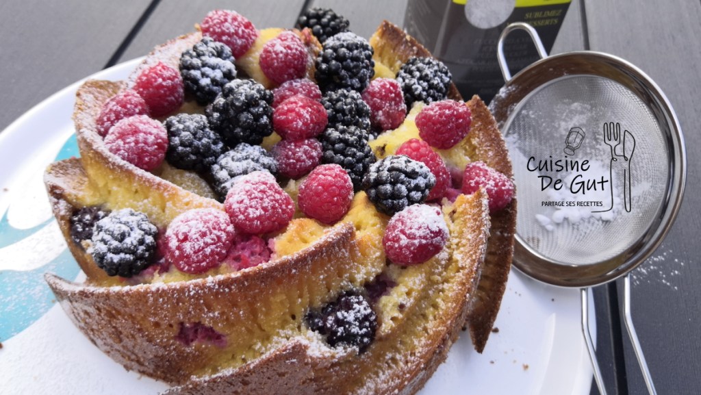 Gâteau au lait chaud aux framboises et mûres