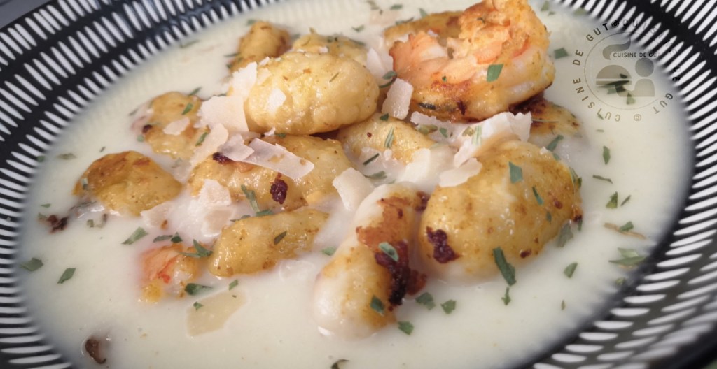 Gnocchis crevettes et crème de céleri au curry
