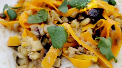 Nouilles asiatiques carotte et aubergine à l’ail et cumin pour le CMUM