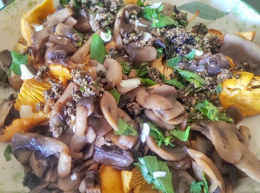 Poêlée de champignons et chapelure aux olives