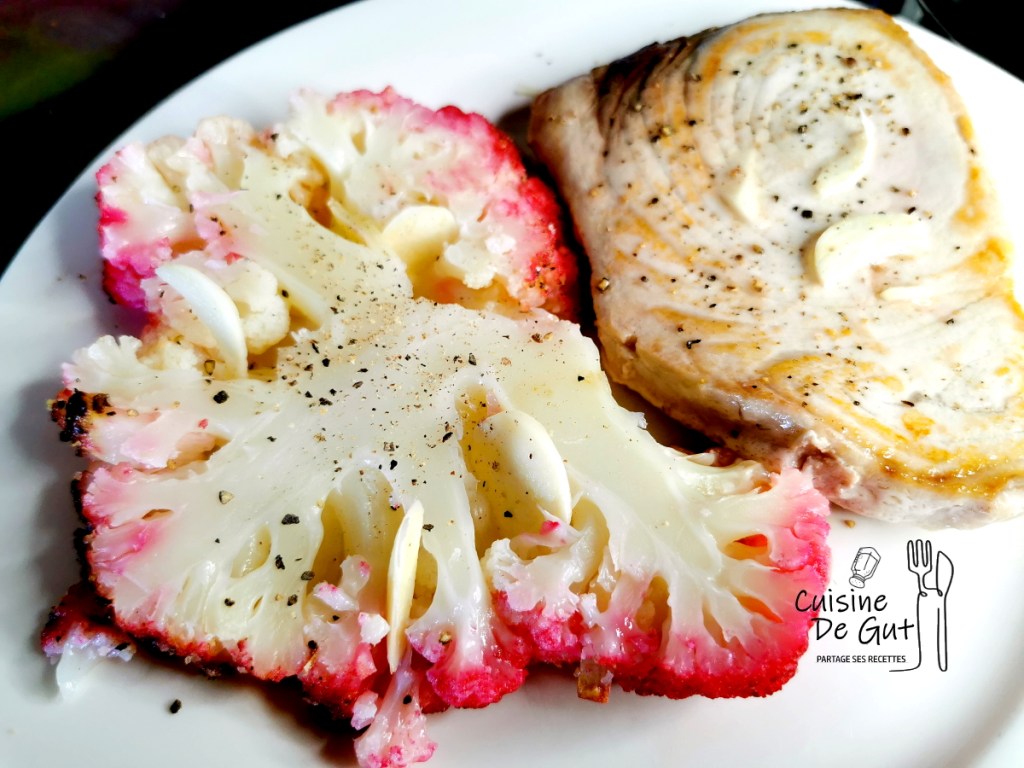 Tranches d’Espadon et de chou fleur à l’ail rose
