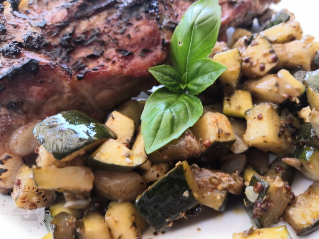 Travers de porc courgettes à la moutarde à la plancha