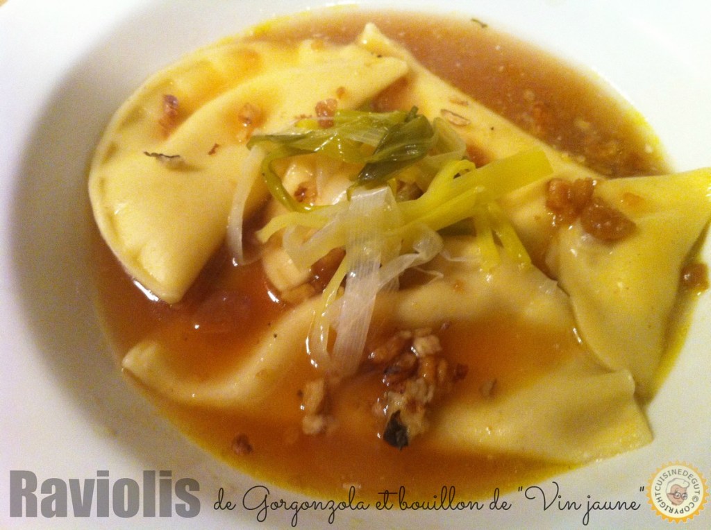 Raviolis de Gorgonzola et bouillon au « Vin jaune »