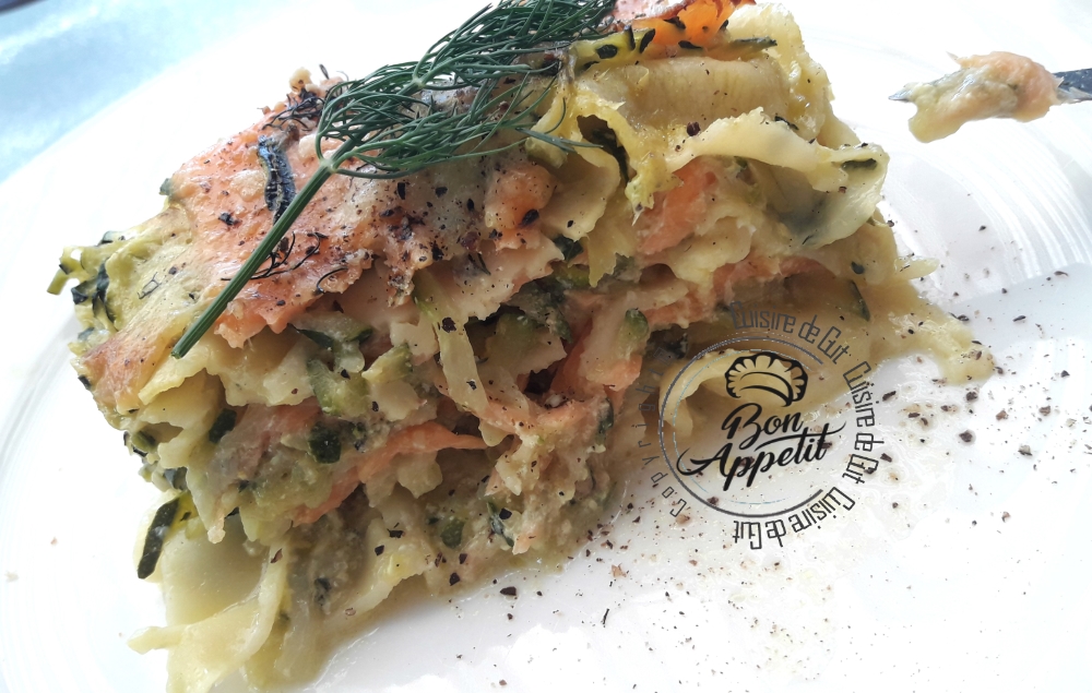 Lasagnes Saumon courgettes au colombo et aneth