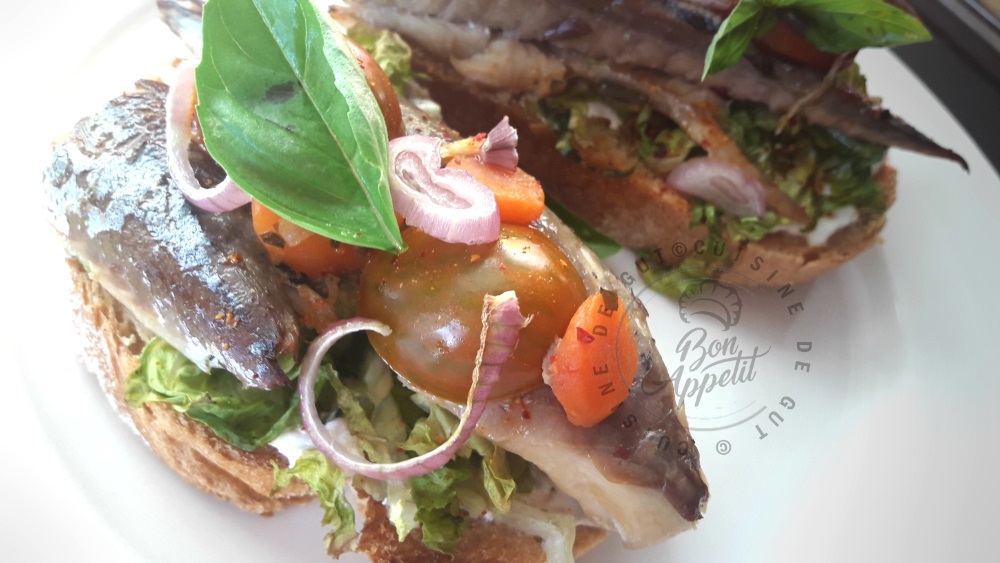 Tartines de maquereaux sur lit de Chavroux