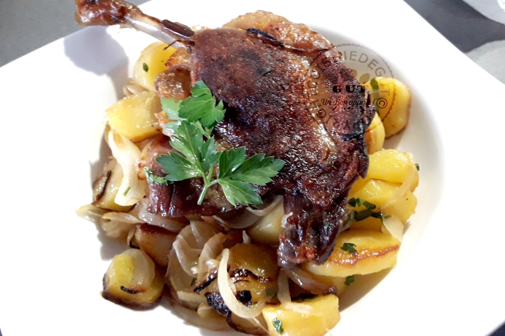 Cuisse de canard confite et Pommes de terre à la Lyonnaise