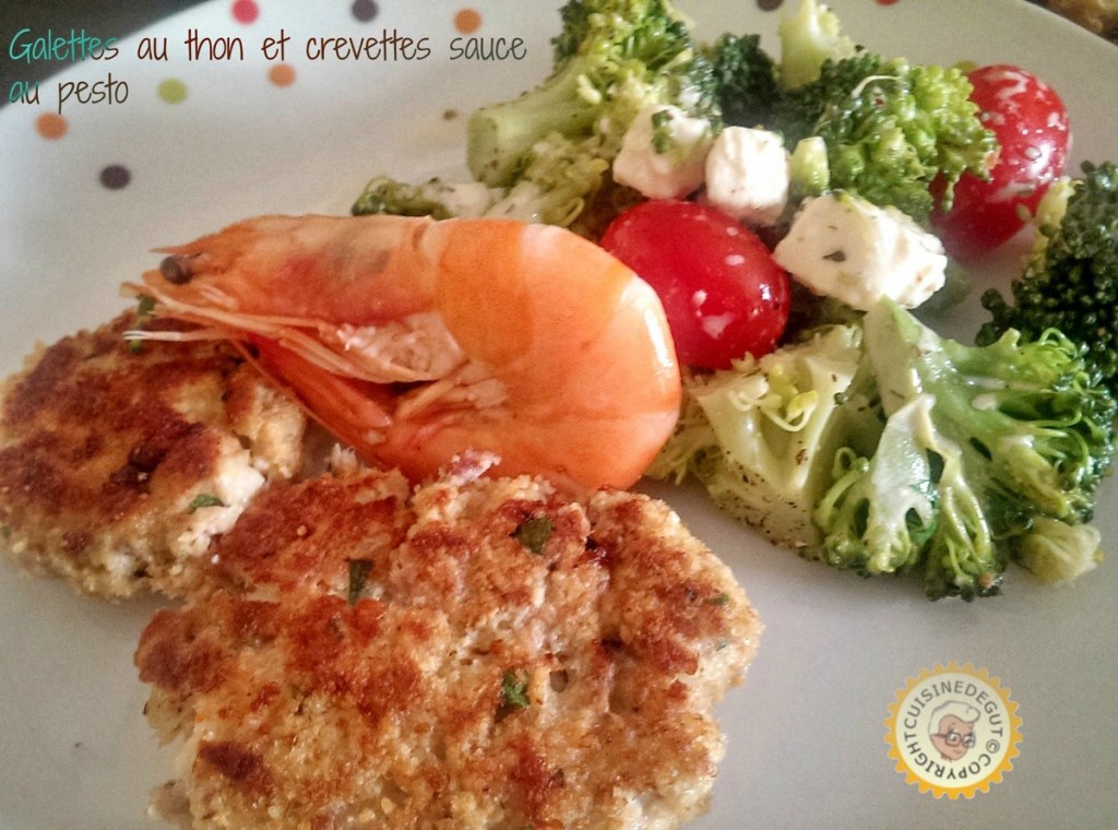 Galettes au thon et crevettes sauce au pesto