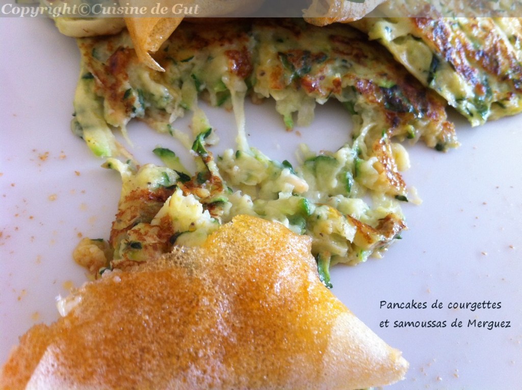 Pancakes de courgettes et samoussas de merguez
