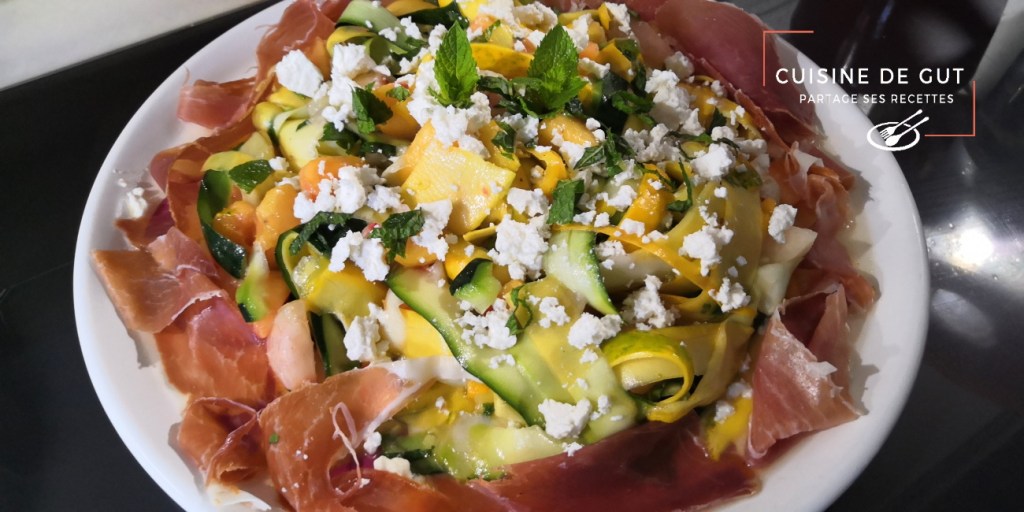 Salade estivale de courgettes fruits jambon et feta, une recette facile