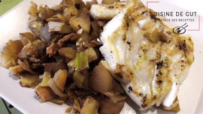 Cabillaud et poêlée de pâtisson poireaux au beurre d’escargot