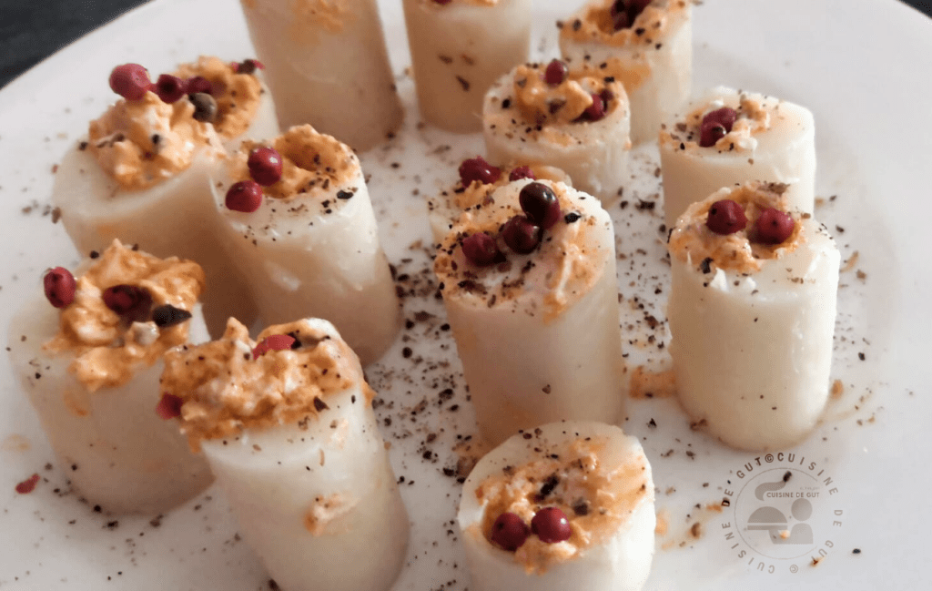 Coeurs de palmier fourrés chèvre et tapenade tomate