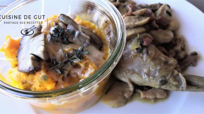 Cuisse de pintade aux cèpes et purée de potimarron au thym