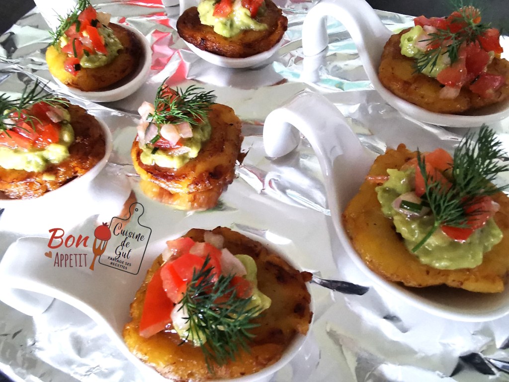 Patacones au Guacamole et Salsa de tomates en mise en bouche