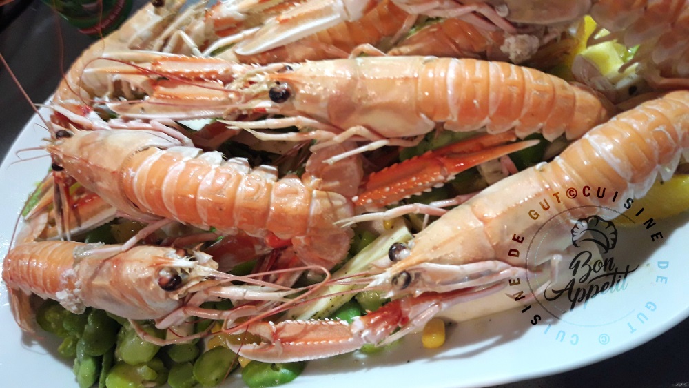 Langoustines vapeur et salade sucrée salée