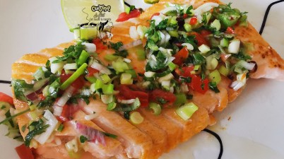 Sauce chien et son coeur de saumon grillé pour partir aux Antilles