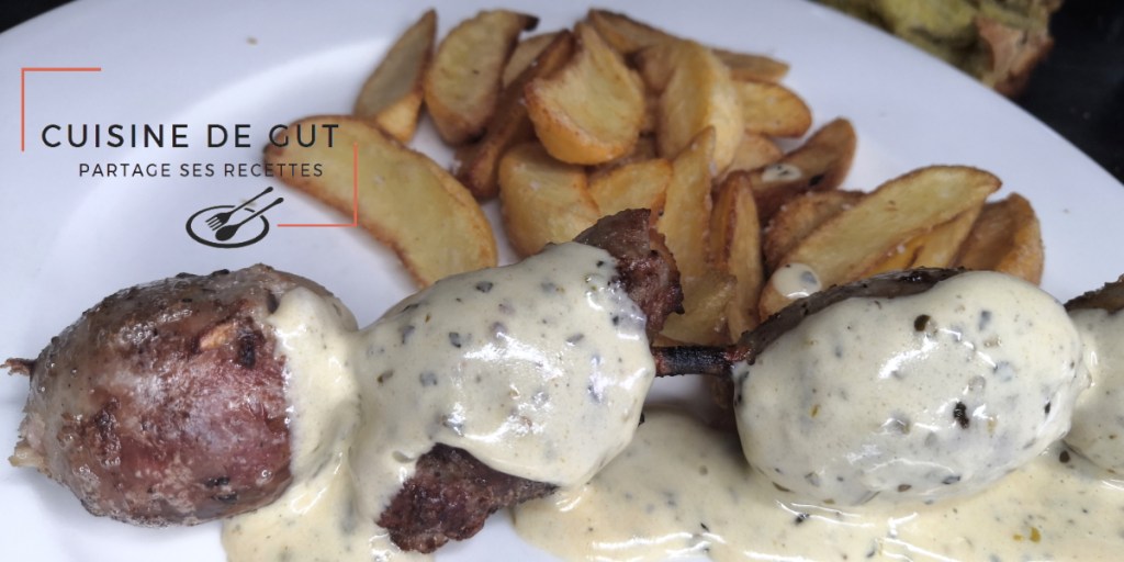 Brochettes d’andouillettes au barbecue sauce moutarde et sauce Basque forte