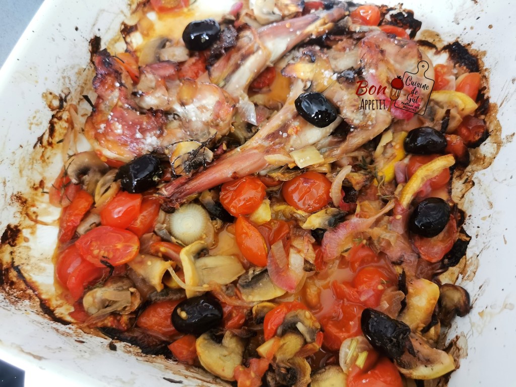 Lapin au four, aux citron, tomates champignons et olives !