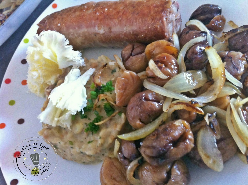 Andouillette aux aux chataignes à la plancha sauce « Tête de Moine »