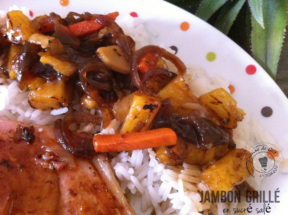 Jambon grillé en sucré salé d’ananas et de chutney d’oignons