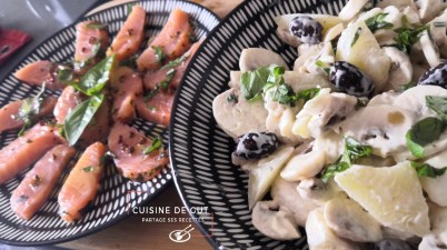 Coeur de Saumon mariné et salade de champignons pommes de terre