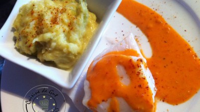 Cabillaud aux poireaux et mozza sauce poivron et Panna cotta de poivrons