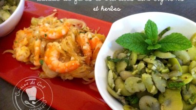 Salade de fèves et crevettes aux oignons et herbes