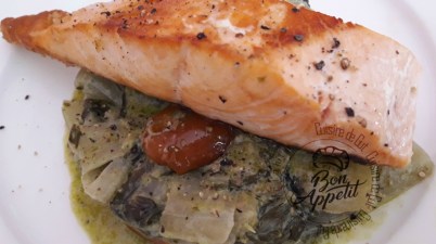 Saumon grillé et blettes au pesto de basilic