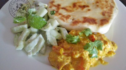 Keema naan et Raïta concombre à la mente et Raïta tomates et oignons aux épices